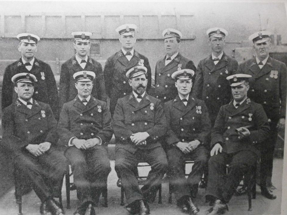 Rear row standing, L to R - - CPO's Gibbs, George Wells, Cantrell, Doylend, William Thomas Robert, Trott, Thomas James, Watts, Maddox, Thomas Joseph.